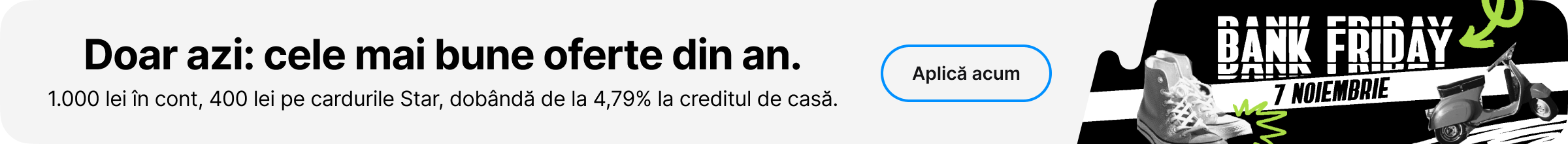 Oferta de la Banca Transilvania a fost descrisă în Notificarea transmisă tuturor clienților. Dacă doriți mai multe amănunte e necesar să mergeți în agențiile BT pentru a primi contractul de card de credit cu oferta BT în cazul cardului de credit. Pentru informații despre condițiile ofertei BT cu privire la alte produse, puteți apela și la pagina internet dedicată